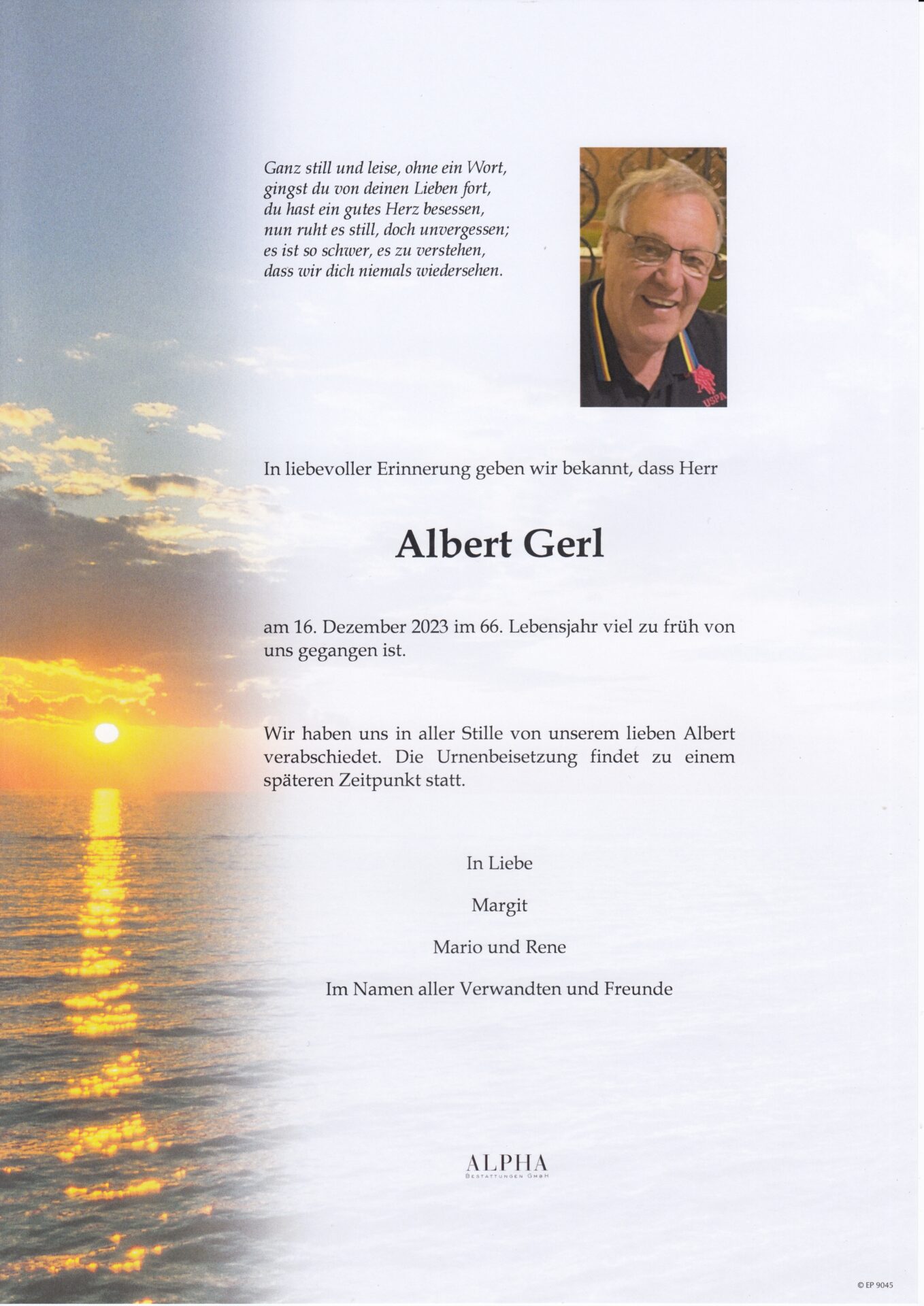Wir haben uns in aller Stille von unserem lieben Albert verabschiedet. Die Urnenbeisetzung findet zu einem späteren Zeitpunkt statt.