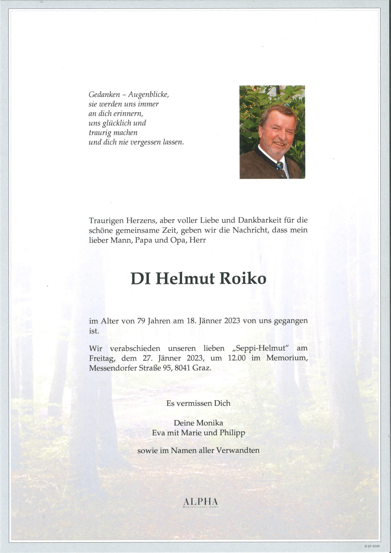 Wir verabschieden uns von unserem lieben Verstorbenen am Freitag, dem 27. Jänner 2023, um 12.00 Uhr im Memorium, Messendorfser Straße 95, 8041 Graz