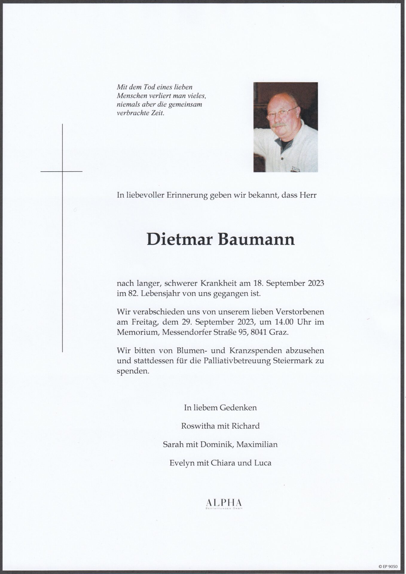 Am Freitag, dem 29. September 2023 um 14:00 Uhr im Memorium, Messendorfer Straße 95, 8041 Graz