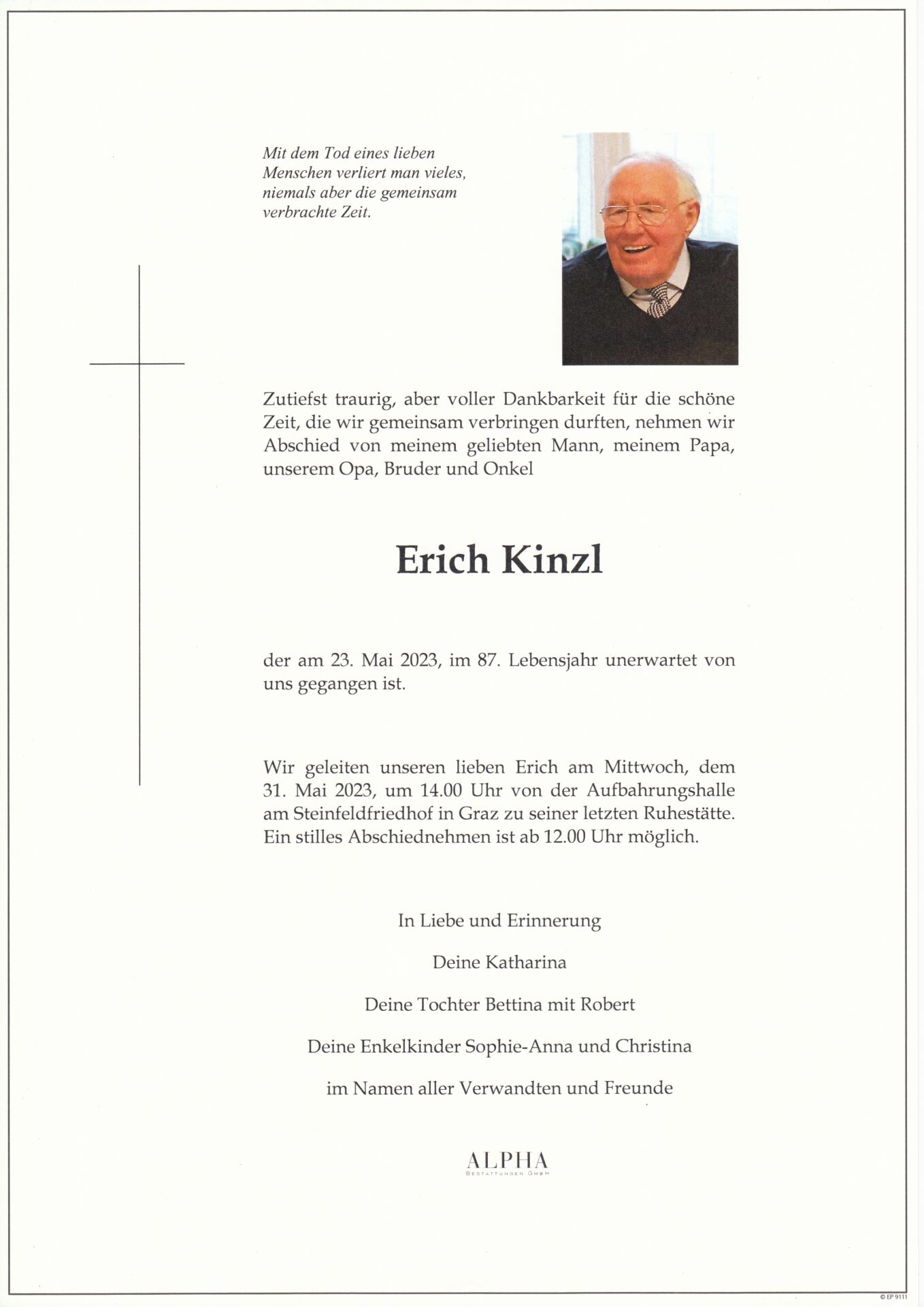 Mittwoch, 31.05.2023, um 14.00 Uhr am Steinfeldfriedhof in Graz