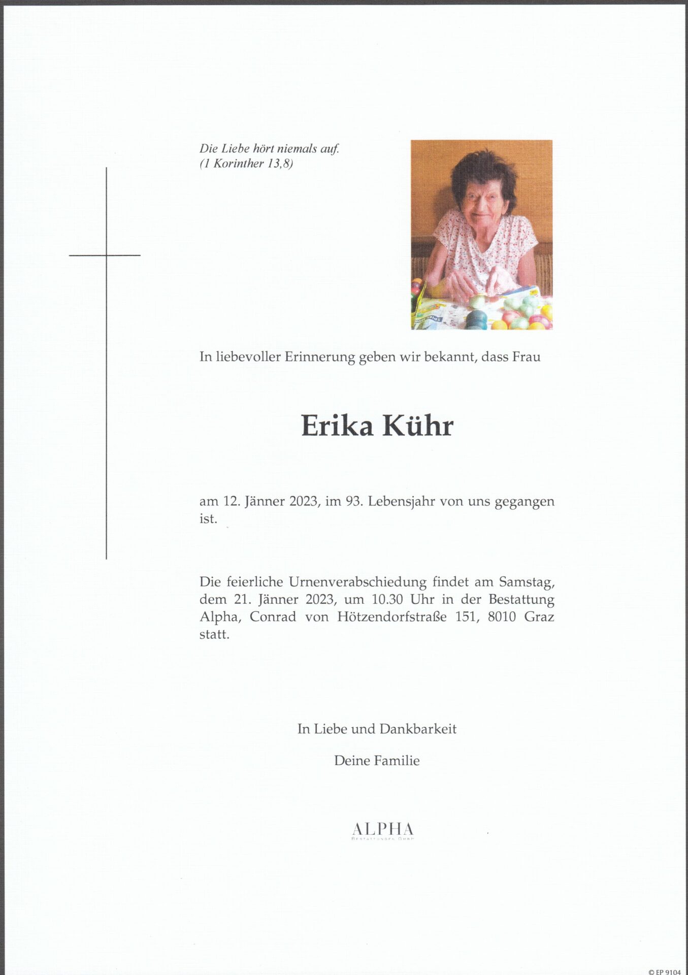 Samstag, 21. Jänner 2023, um 10.30 Uhr in der Bestattung Alpha, Conrad von Hötzendorfstraße 151, 8010 Graz