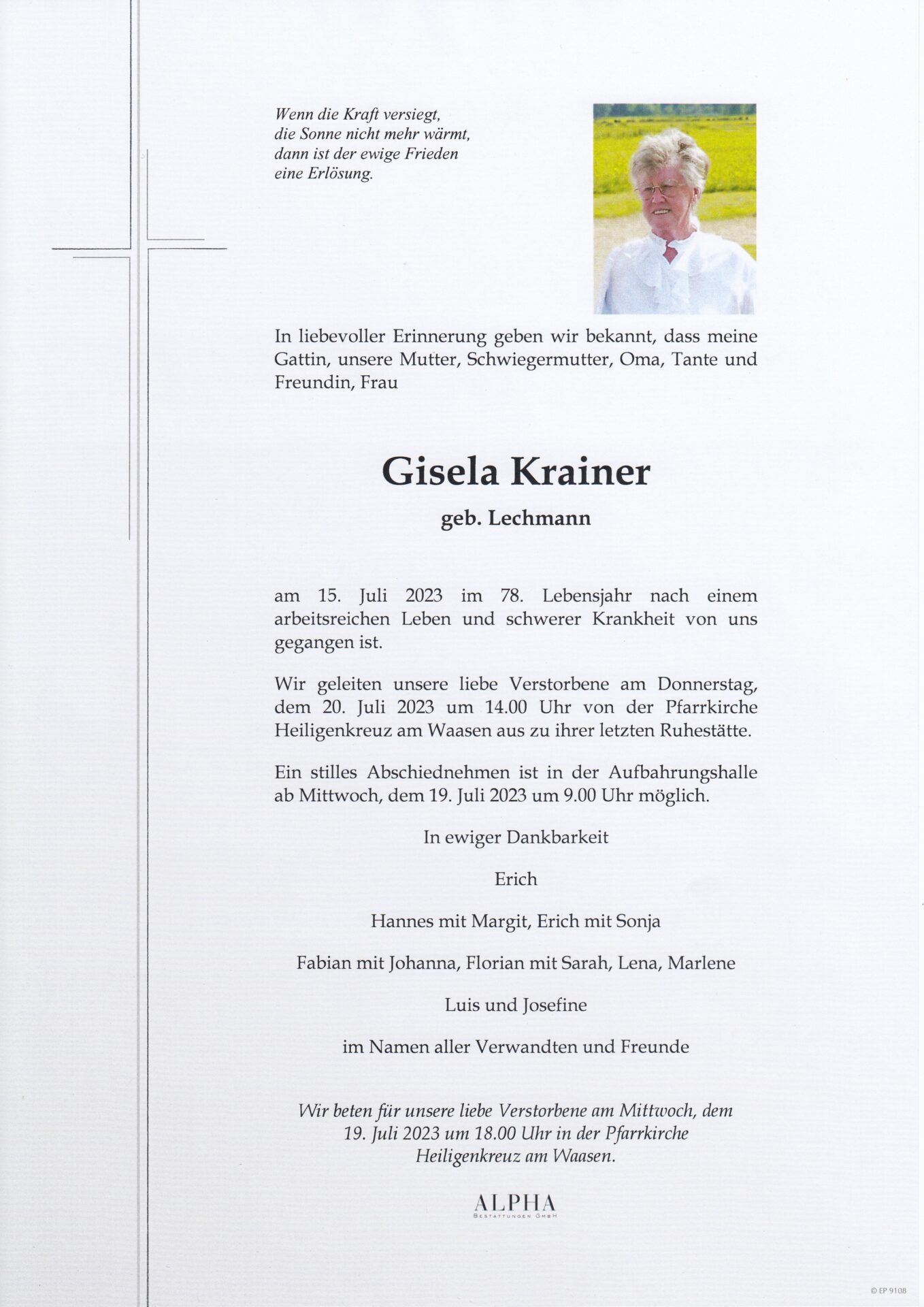 Donnerstag, 20. Juli 2023, 14.00 Uhr, in der Pfarrkirche Heiligenkreuz am Waasen