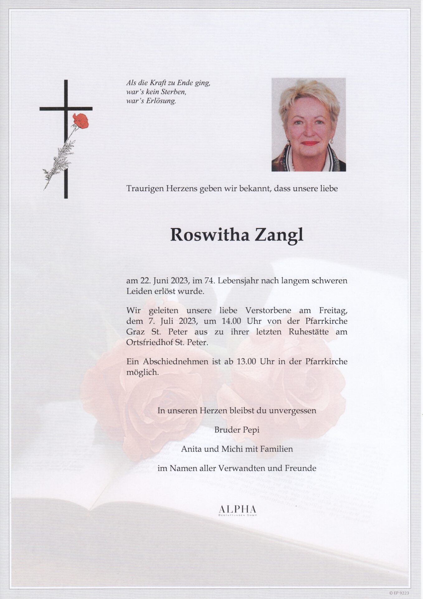 Freitag, 7.7.2023, um 14.00 Uhr am St. Peter Ortsfriedhof