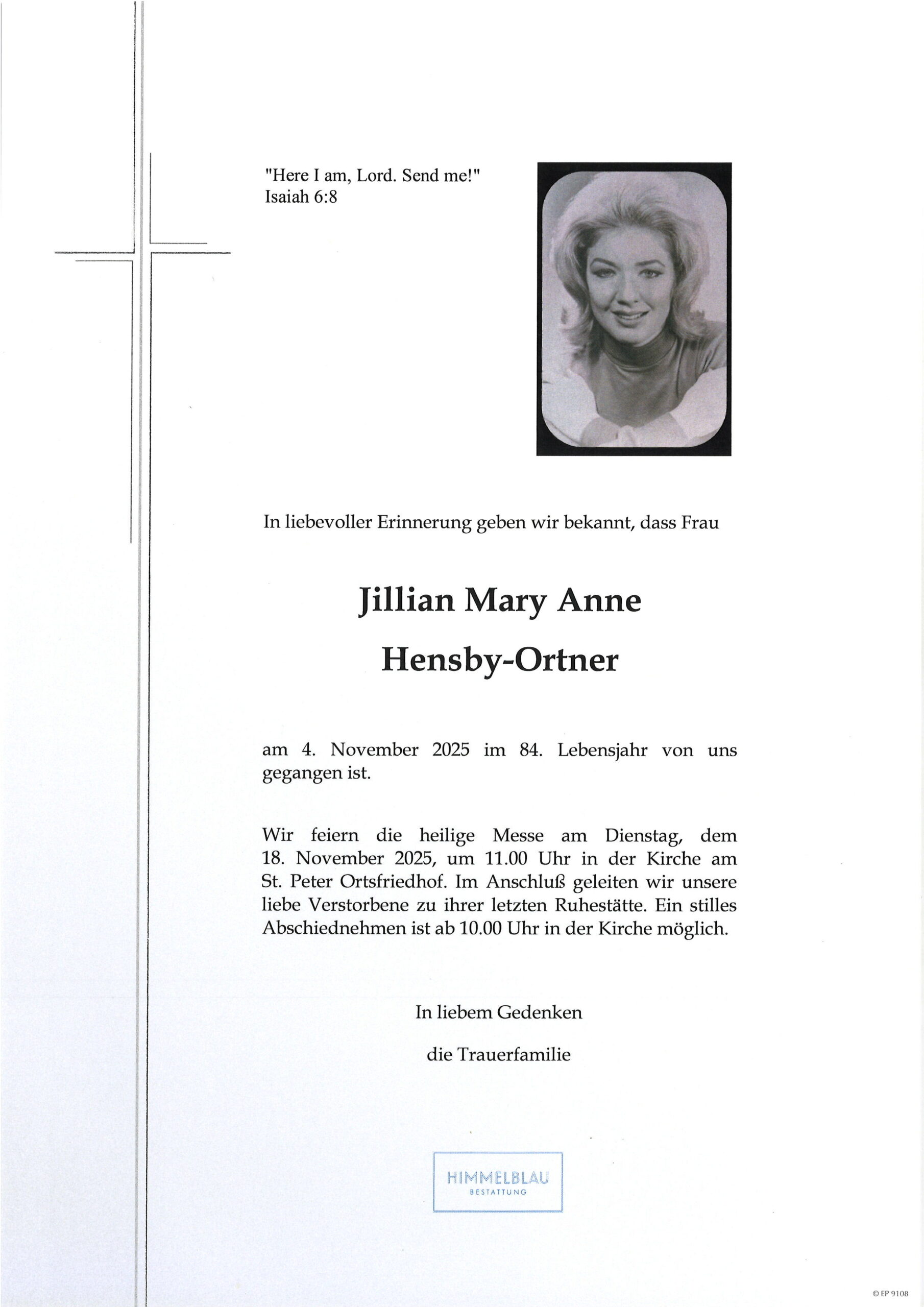 Liebe Jillian! Ruhe sanft in Gottes Händen.Möge das Licht leuchten im Glauben an die Auferstehung.