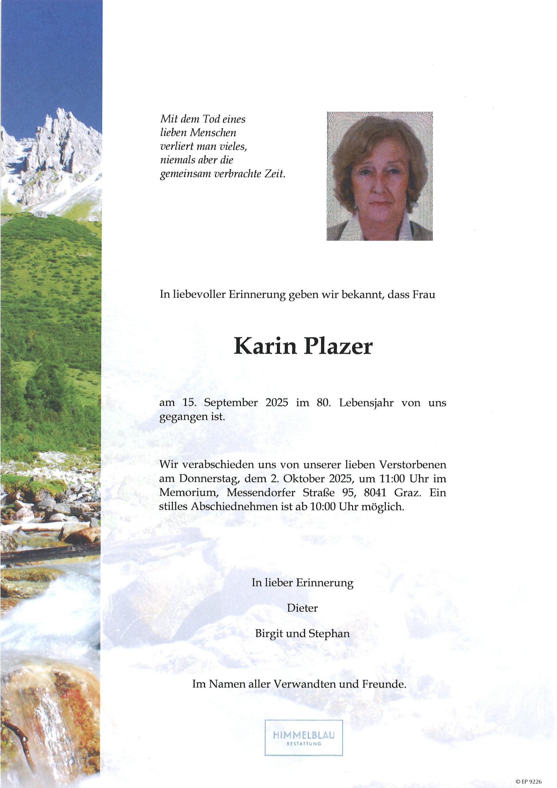 Wir verabschieden uns von unserer lieben Verstorbenen am Donnerstag, dem 2. Oktober 2025, um 11:00 Uhr im Memorium, Messendorfer Straße 95, 8041 Graz. Ein stilles Abschiednehmen ist ab 10:00 Uhr möglich.