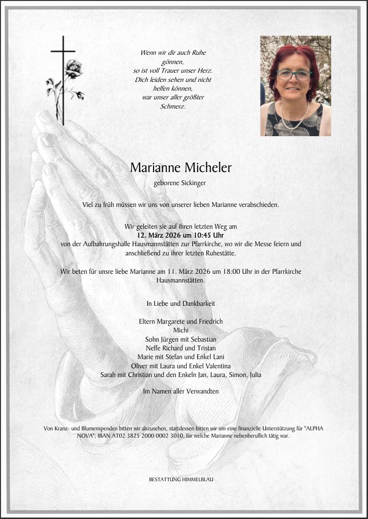 Wir beten für unsre liebe Marianne am 11. März 2026 um 18:00 Uhr in der Pfarrkirche Hausmannstätten.