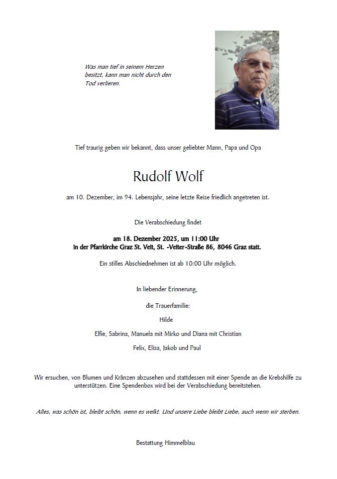 Ein stilles Abschiednehmen ist ab 10:00 Uhr möglich.